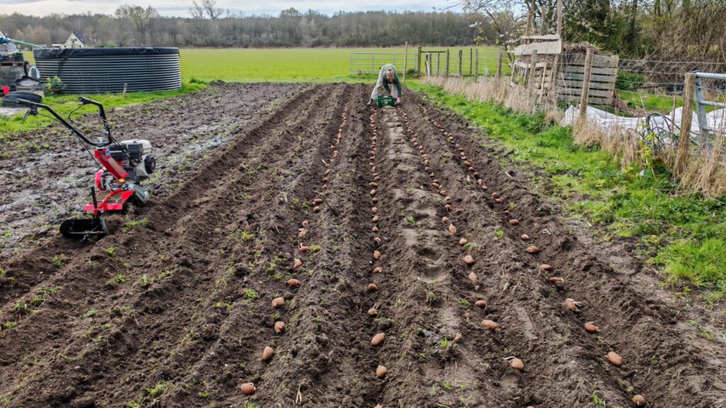 Of we niet een feestelijker foto hadden, zo met de Pasen? Nou eigenlijk vinden wij het poten van de aardappels bijna net zo’n feestelijk moment als wanneer je chocolade eieren in de tuin vindt. Nou jij weer! Pasen of niet, Kievit gaat gewoon door! Niet dat we niks om Pasen geven hoor, maar we vieren het gewoon op onze vrije zondag. We kunnen niet makkelijk een dag minder in onze volgeboekte logistieke week, dus wij eten wel eitjes op de zaak maandag! Voor jou betekent het dat je even je festiviteiten moet onderbreken misschien, om tijdig je boodschappen te bestellen, want ook daarin zijn we onverbiddelijk. Er zijn veel plantjes te koop momenteel, allerlei kruiden en twee soorten aardbeien! Gelukkig is het zo gepiept, daarna kan je weer verder met eieren verven of wat je ook maar doet met de Pasen. Fijne dagen gewenst!