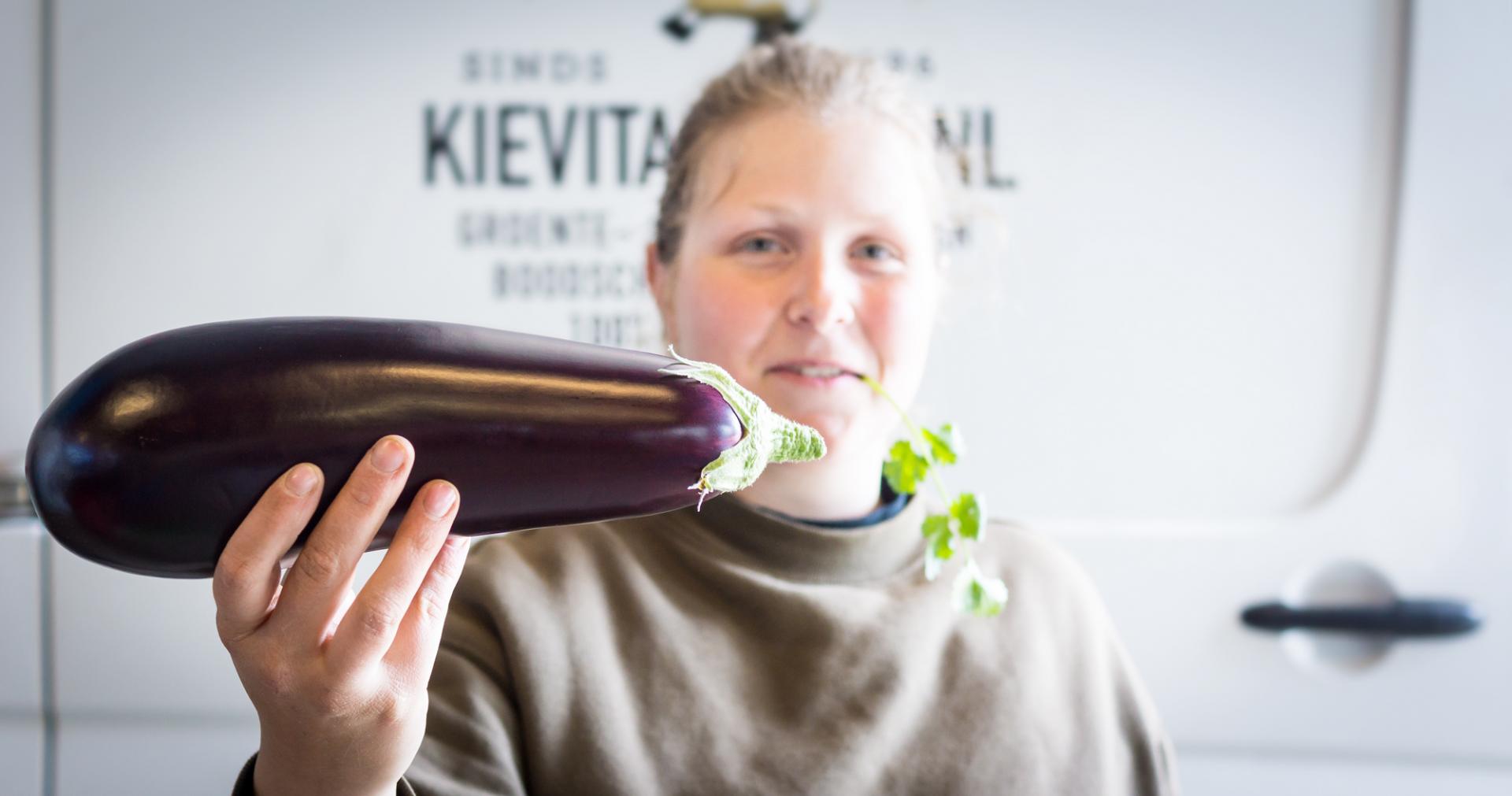 Als er één product is waar ik relatief laat waardering voor kreeg, dan is het de aubergine. Voor mij een groente voor gevorderden dus, maar daardoor niet minder lekker. Deze wonderlijke paars-glanzende ratatouillevrucht – vooral bekend van landen rondom de Middellandse Zee – vraagt een iets andere benadering dan bijvoorbeeld een bos wortelen. Deze ‘eierplant’ (in het Engels heet hij eggplant) wordt gekweekt in Spanje, Italië en in onze Nederlandse kassen. Deze mooie glanzende rakkers van deze week komen uit de Kas van Ron van Dijk uit Schalkwijk.