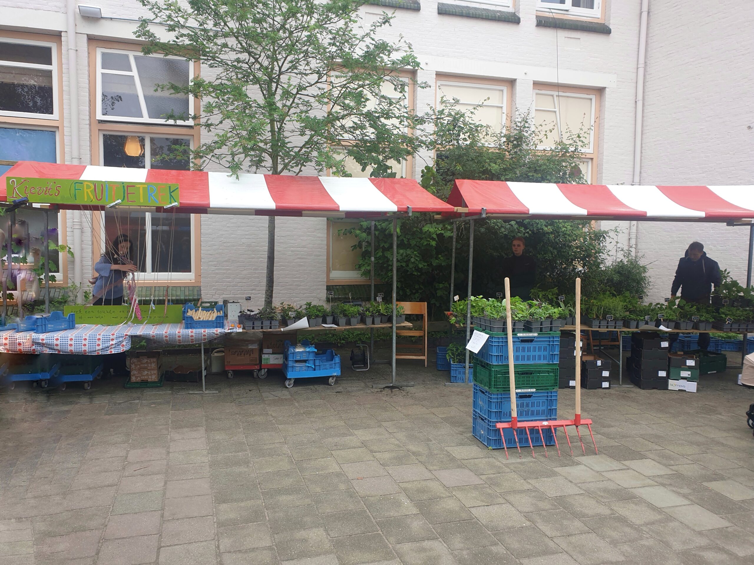 Wij stonden, zoals aangekondigd, afgelopen zaterdag weer op de knusse bazaar van de Vrije School Mareland in Leiden. Altijd spannend om dit in te roosteren, want het is nu het drukste moment van het jaar! Juist daarom is het bijzonder om de razende-oogst en schoffeltrein even te verlaten om klanten te spreken. Sommigen zijn al klant vanaf het begin, soms zelfs sinds 1996! Toen waren we nog een piepjong Kievitje, net beginnend aan een volkomen onzeker avontuur: Biologische groenten telen en deze in pakketvorm bezorgen aan een vaste klantenkring. Kansloos natuurlijk, hoe verzin je het!