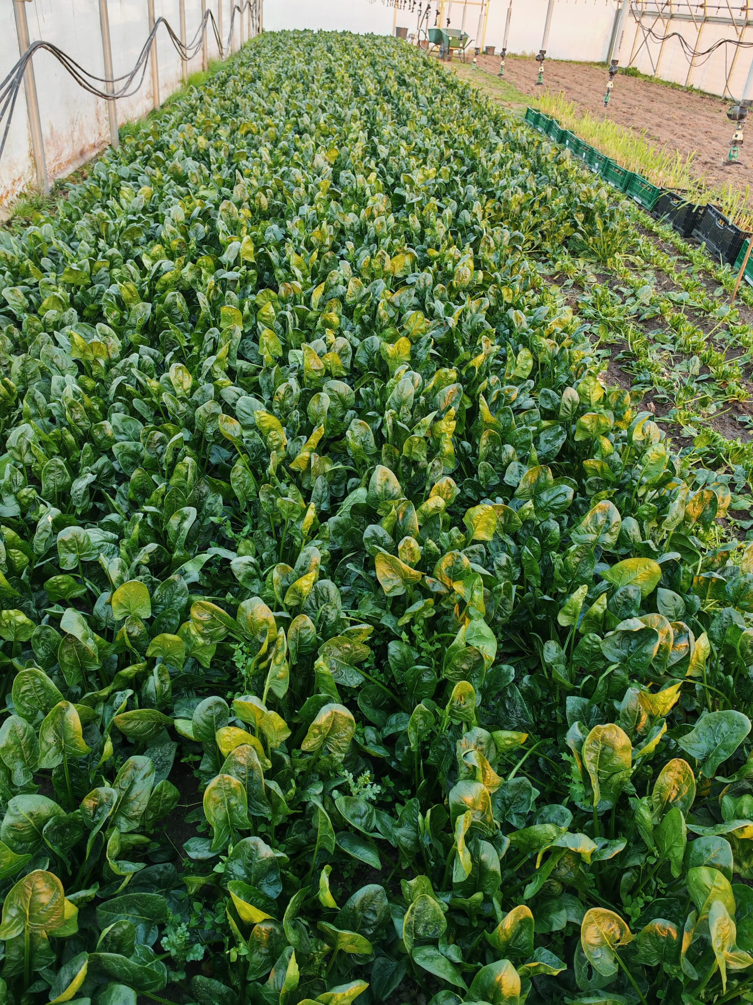 Die spinazie is geweldig doorgegroeid, die is vertroeteld tot en met. De Nederlandse bodems zijn niet meteen van nature rijk aan mineralen. We strooien daarom elk jaar wat gesteentemeel op het veld. Onze spinazie heeft de mineralen ook als bladbemesting gekregen. Hij was een paar weken geleden een beetje aan het inhouden qua groei en dit heeft geholpen. Het leek erna alsof hij nooit meer wilde stoppen met groeien, zo vitaal is de spinazie ervan geworden. En dat is leuk voor jou natuurlijk, want hij is mogelijk gezond, omdat het een zeer vitale plant is. En bovendien is dit ook via de analysemethode aannemelijk te maken door al die extra mineralen die hij in de vorm van gesteentemeel via zijn blije bladeren heeft opgenomen. Geen paniek als je geen spinazie in je pakket hebt ontvangen, we zijn zeker van plan om ál onze blaadjes te vertroetelen! Naast alle mineralen en vitaminen, valt er nog veel meer te beleven aan bodem- en plantgezondheid die wordt doorgegeven aan degene die de oogst mag opknagen. In een volgende blog meer daarover!