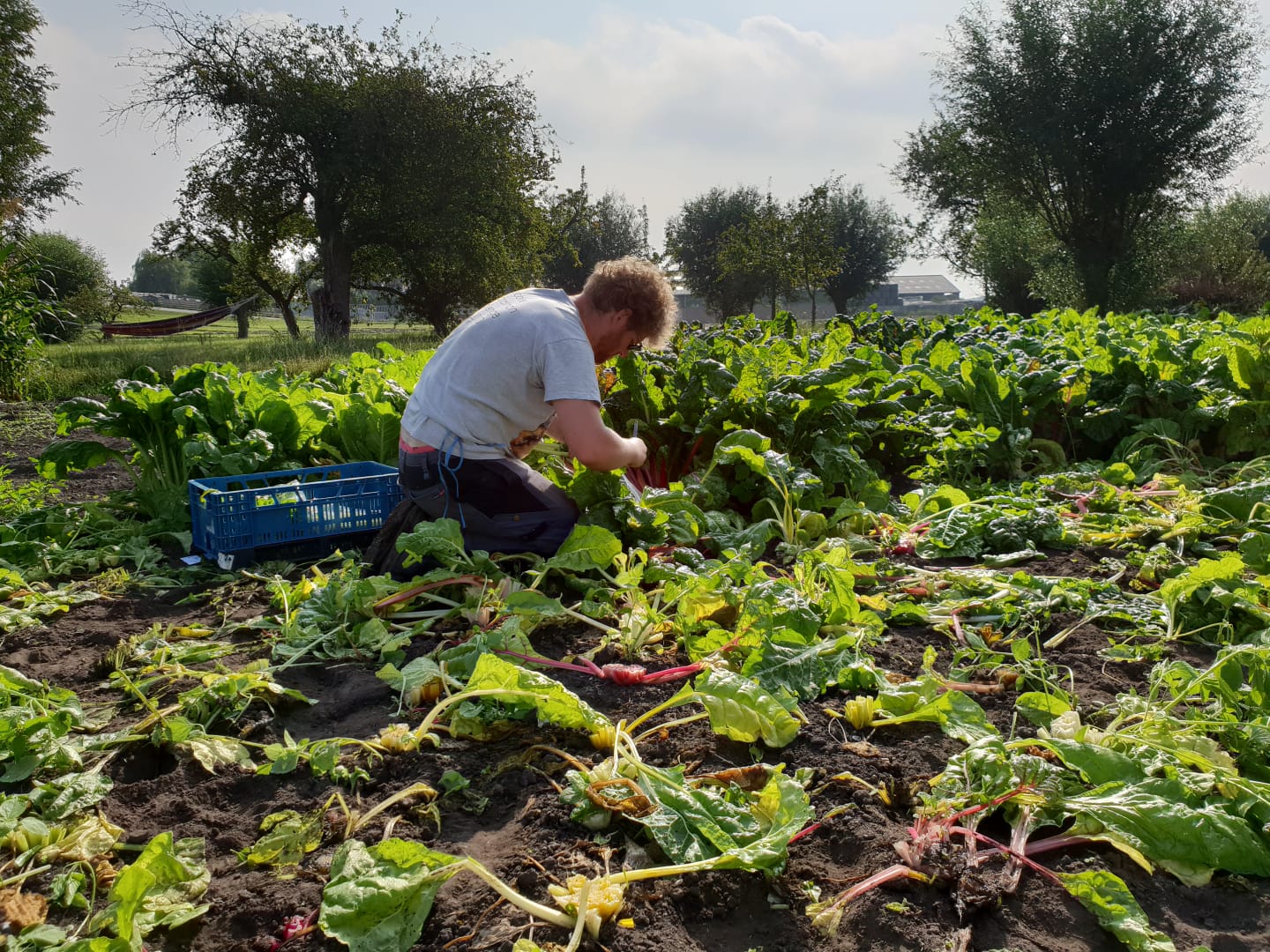 Na de bosbieten en de tuinbonen, hebben we nog een oogstprogramma bij Chris Kempenaar. Samen met zijn zoon heeft hij een biologisch akkerbouwbedrijf in Leimuiden. Naast spruitjes, pompoen, aardappels, granen en nog een paar teelten, zetten wij in overleg jaarlijks bosbiet en tuinbonen. Na onze vroege zomeroogsten, verschijnen wij deze week een paar keer vroeg in de morgen op het veld voor de snijbiet-oogst. De woeste bladeren proberen wij te beteugelen, toch is het fijn om te oogsten! Snijbiet is een ouderwetse, zacht smakende bladgroente die wordt gekookt of gestoofd.