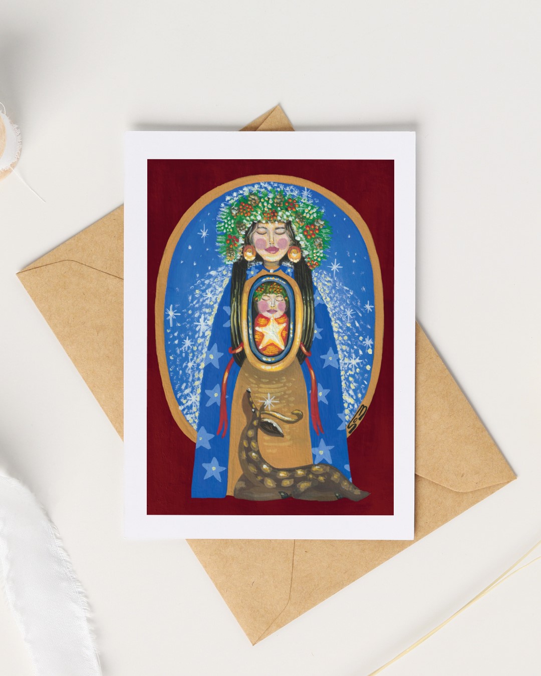 Sanne is inmiddels 27 jaar en probeert met haar schilderijen haar brood (ook voor man en kinderen) te verdienen en het eerste begin is er. Als vader, die met eigen activiteiten het dagelijkse brood vergaart, kan ik dit natuurlijk alleen maar toejuichen. En daarom komt er een door haar geschilderde en ontworpen Kerstkaart in de Digitale Boerenmarkt te koop! Per volgende week, per setjes van 10, het is een prachtige kerstkaart geworden. Dus weersta nog even al die gewone Kerstkaarten in de winkel en bewonder vanaf donderdag dit betaalbare kunstwerk tussen je gewone Kievitboodschappen!