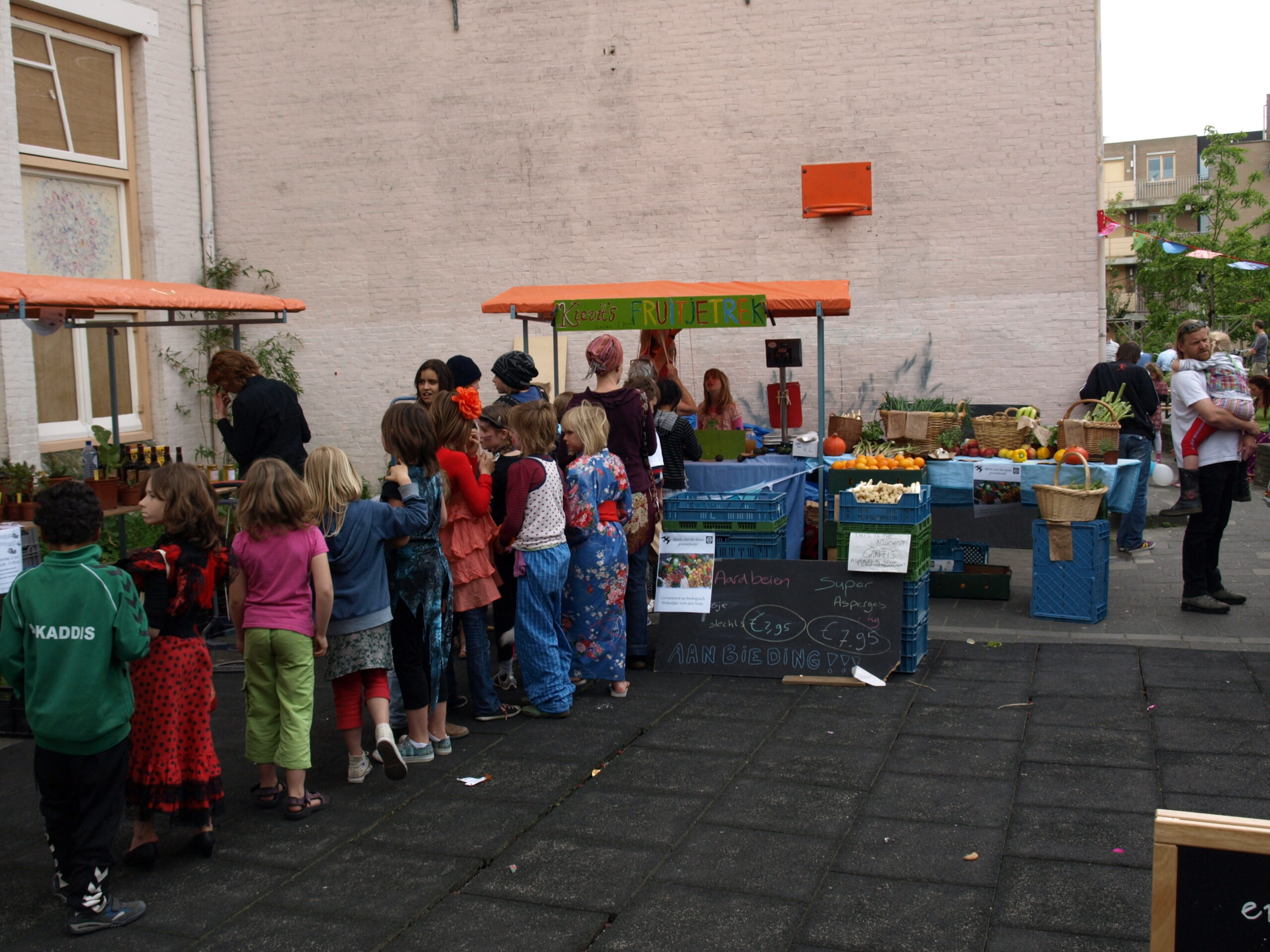 Deze zaterdag staan we, terugkerend naar een leuke traditie, op de bazaar van de Vrije School aan de Maresingel met ons fruitje-trek-kraampje. Trek aan een touwtje…. En krijg een fruitje! En soms zit er voor de grap een uitje in, maar als je dan moet huilen mag je ook ruilen. Voor de grote mensen verkopen we asperges en kruiden voor in de vensterbank of tuin, u als klant heeft die misschien al lang via de Digitale Boerenmarkt gekocht. Als je gewoon langskomt vinden we dat ook heel gezellig!