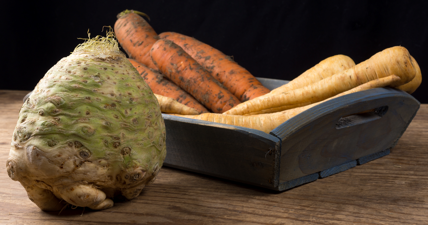 Een belangrijke telg van de selderij-familie is de knolselderij. Deze gezellige dikkerd vormt samen met de bleekselderij en het selderij-kruidenbosje de familie selderij, die onderdeel uitmaakt van een enorme groentefamilie, de schermbloemigen. Een peen lijkt niet erg op een bleekselderij, totdat ze doorschieten en een bloem vormen, dan denk je – verrek – het lijkt wel familie, en jawel, dan heb je gelijk. Dat moet een lekker gevoel geven al in de eerste alinea van deze nieuwsbrief!
