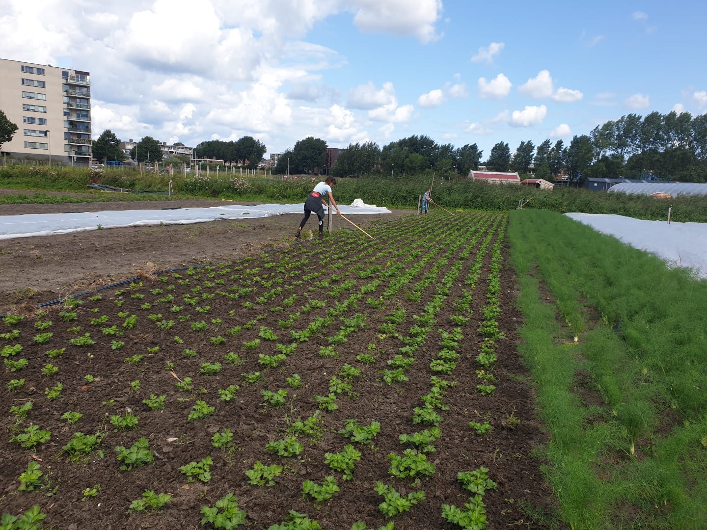 Onze compost wordt namelijk gemaakt van maaisels van natuurgebieden. Riet en graslanden worden gemaaid om de in planten opgeslagen stikstof af te voeren. Deze is door lucht en water aangevoerd en door het maaisel af te voeren, onttrek je het weer aan de natuur. Hierdoor kunnen plantensoorten die van een schrale bodem houden weer terugkomen. De compost die wij ontvangen ruikt fris, is vrij van afval en verrijkt het bodemleven in onze grond. Daar groeien de gewassen weer goed op. Naast deze compost hebben we nog andere plantaardige mestkorrels om de planten verder te stimuleren om goed te groeien. Met de compost voeden we bodem en met luzernebrokjes en korrels van plantaardige reststromen sturen we de plant bij als er tekorten zijn.Uiteraard zijn alle compost en mestkorrels die wij gebruiken door Skal goedgekeurd. Het leuke is dat we onze hele tuinderij op deze manier plantaardig en circulair van voedingstoffen voorzien.