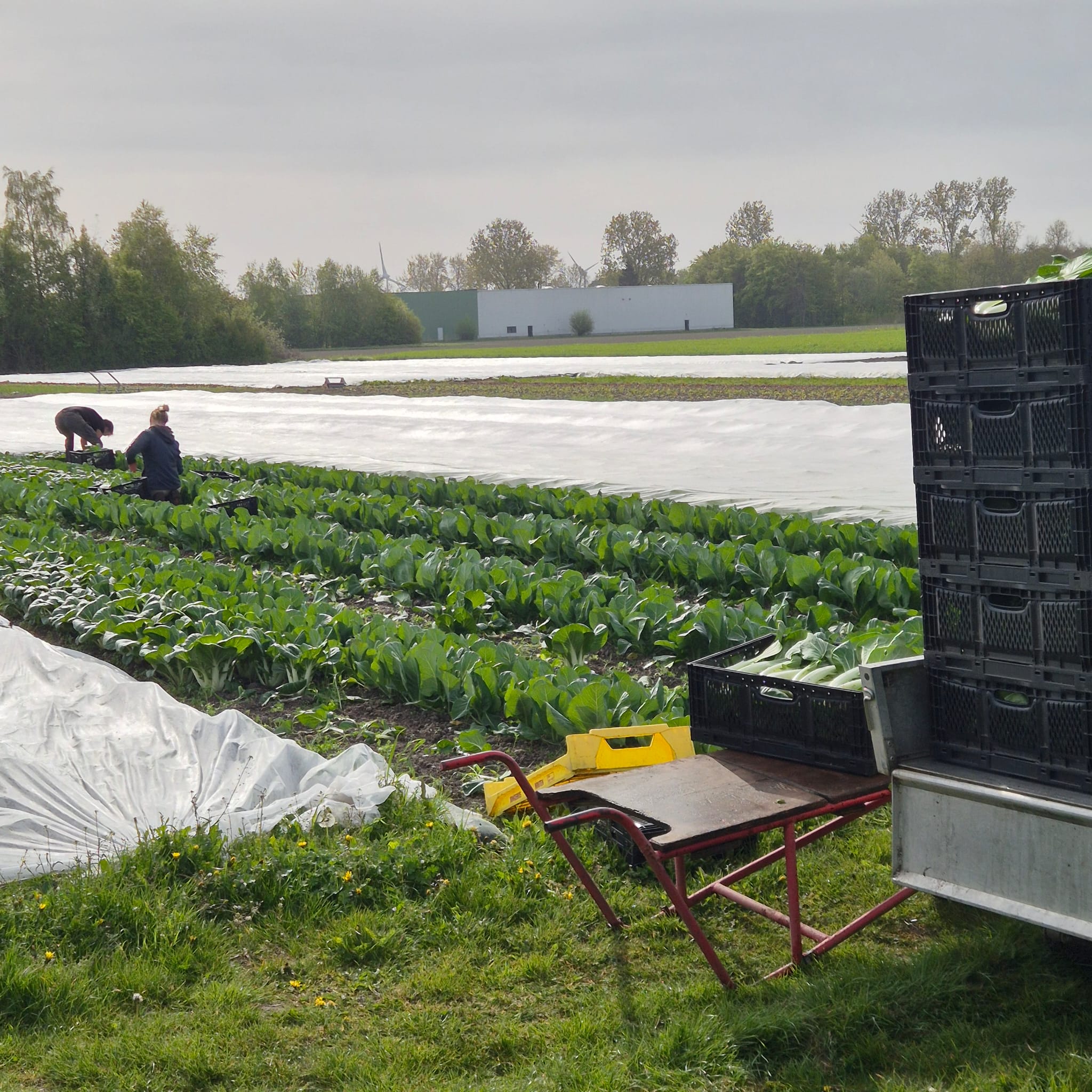 Of anders paksoi wel: de krachtpatser van de lage temperaturen, die ons in bange dagen van vers groen en vitamines voorziet! We snijden ze van buiten! Je zal zien dat deze net even wat mooier en steviger is dan uit de kas. Het was genieten bij de oogst, zelfs met de grote aantallen van deze week.