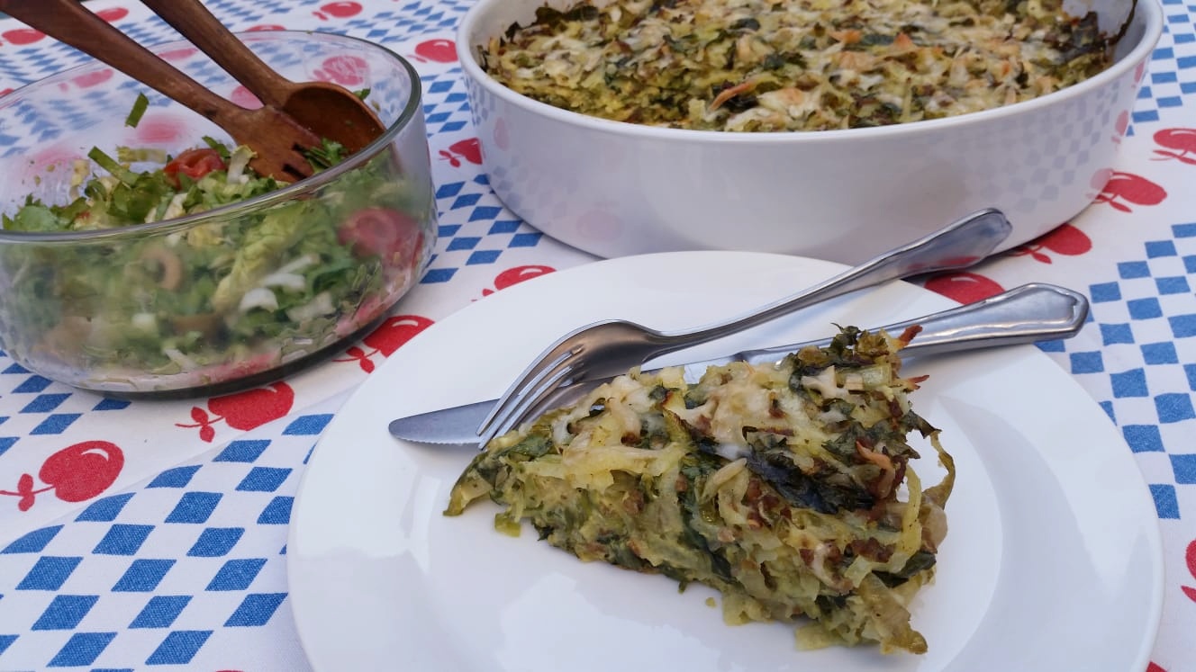 Tja, het moet best lang in de oven, maar verder is dit echt een heel simpel gerecht! Het is tamelijk rijk aan eiwitten, dus misschien wel een goede maaltijd om in de oven te zetten terwijl je even die flukse workout nog doet? Hoe dan ook, onze kinderen zaten te smullen. Van het eventuele restant andijvie maak je er gerust een frisse salade bij. Snijd de andijvie wel echt fijn, onze buitenandijvie is best stevig van structuur. Met een dressing met wat mayonaise en wat tomaat erdoor wordt het lekker!
