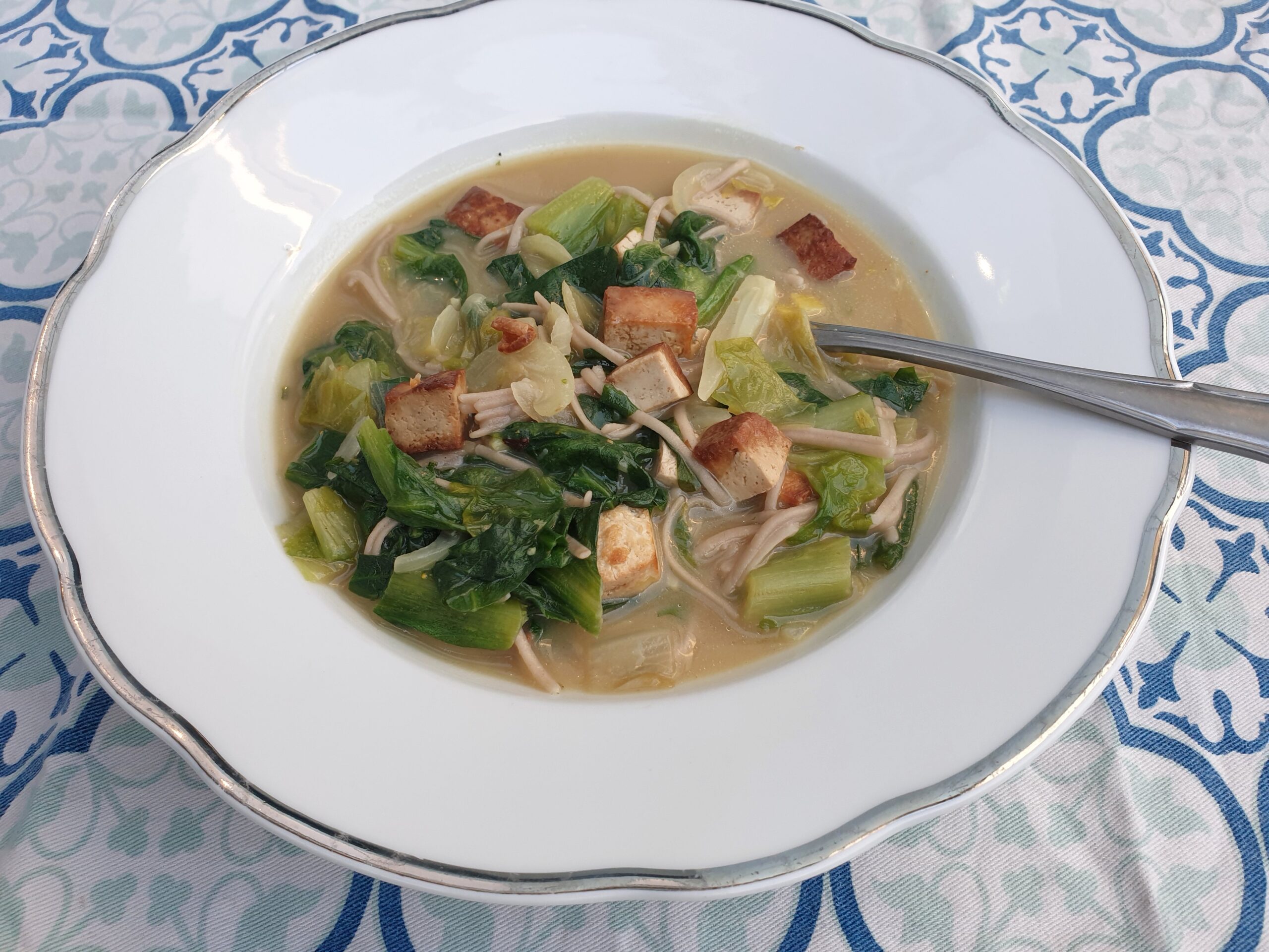 Andijviesoep met noodles en rooktofu
