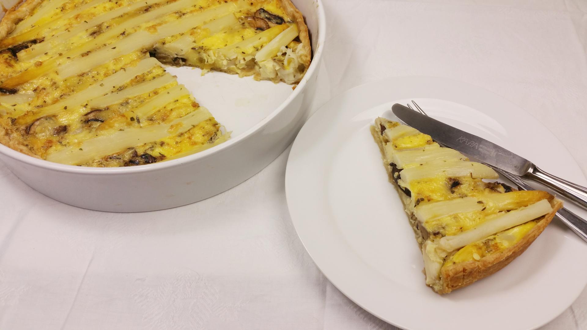 Aspergetaart met champignons