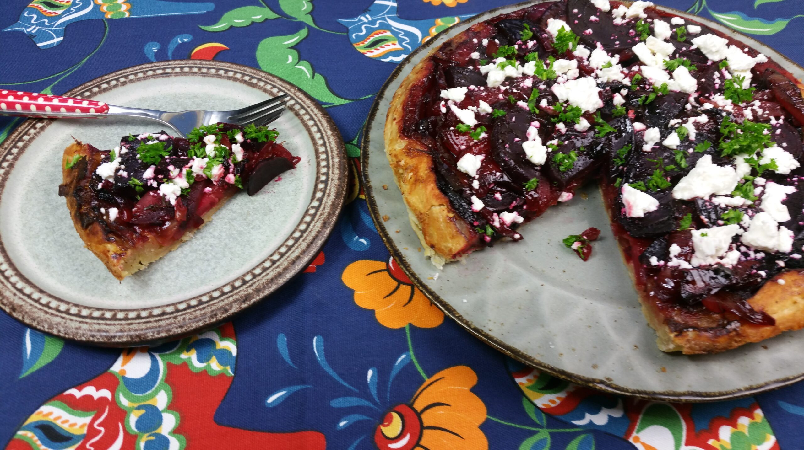 Deze taart ziet er moeilijker uit dan hij is, dus als je iets leuks wilt maken op een etentje, dan is dit iets voor jou. En ook als je gewoon van bietjes houdt en eens iets anders wilt trouwens. Lekker met een frisse groene salade erbij.