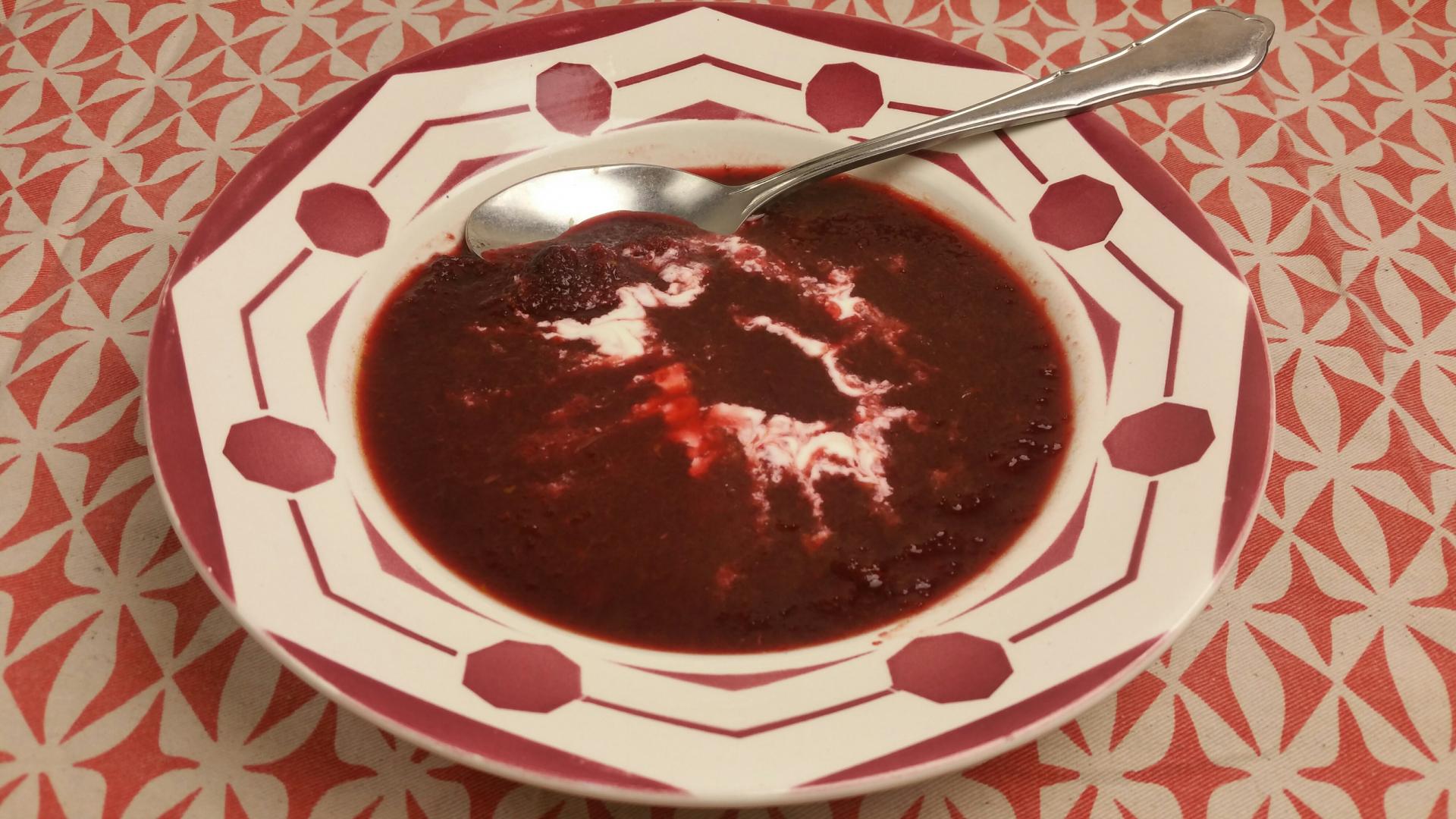 Een bijzondere soep met een leuk verhaal. Ik was net deze bietensoep aan het opscheppen, toen onze vaste bloemenman aan de deur kwam. “Wat ruikt het hier lekker”, zei hij blij. Ik bood hem aan om te komen proeven en zo zaten we opeens met een vreemde meneer aan tafel, heel gezellig. En gelukkig, ook de bloemenman vond de soep lekker.