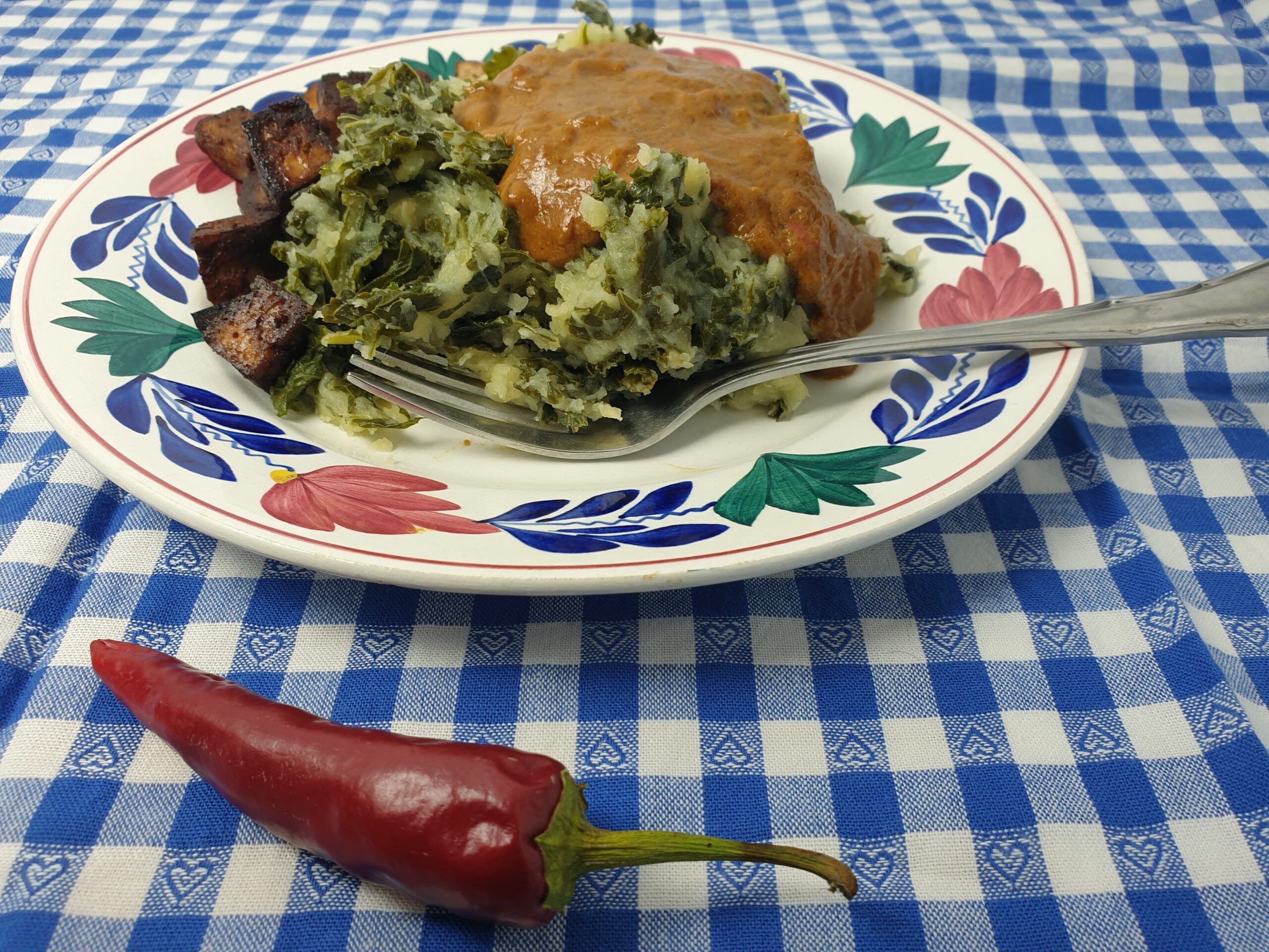 Boerenkoolstamp met satésaus