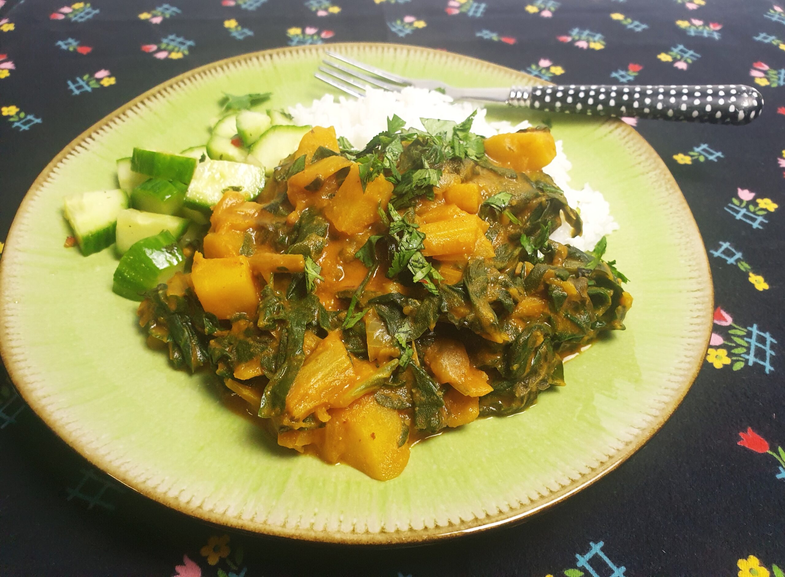 Curry met snijbiet en pindakaas