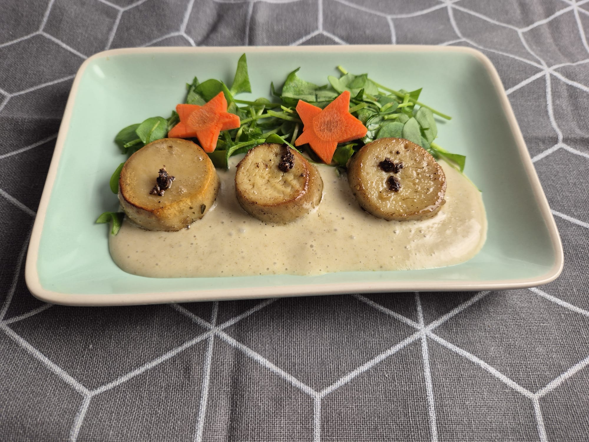 De eryngii of koningsoesterzwam is een stevig paddenstoel die heerlijk is om gewoon lekker gebakken als bite ergens bij te serveren, maar je kunt er ook dit bijzonder gerechtje mee maken: een vegan versie van Sint-Jacobsschelpen. Het kost even tijd, maar het is de moeite waard! Ik heb het hier gepresenteerd als voorgerecht, je kunt het ook met bv een puree van zoete bataat (op smaak gebracht met wat miso, room en p&z) en bijvoorbeeld geroosterde bloemkool , als hoofdgerecht serveren.