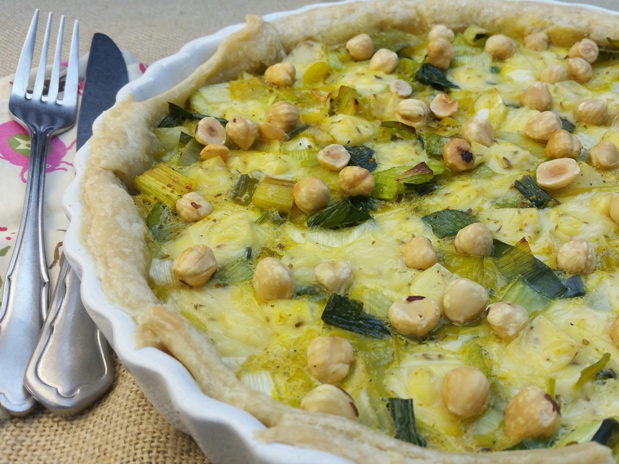 Hartige taart met prei, komijnekaas en hazelnoot