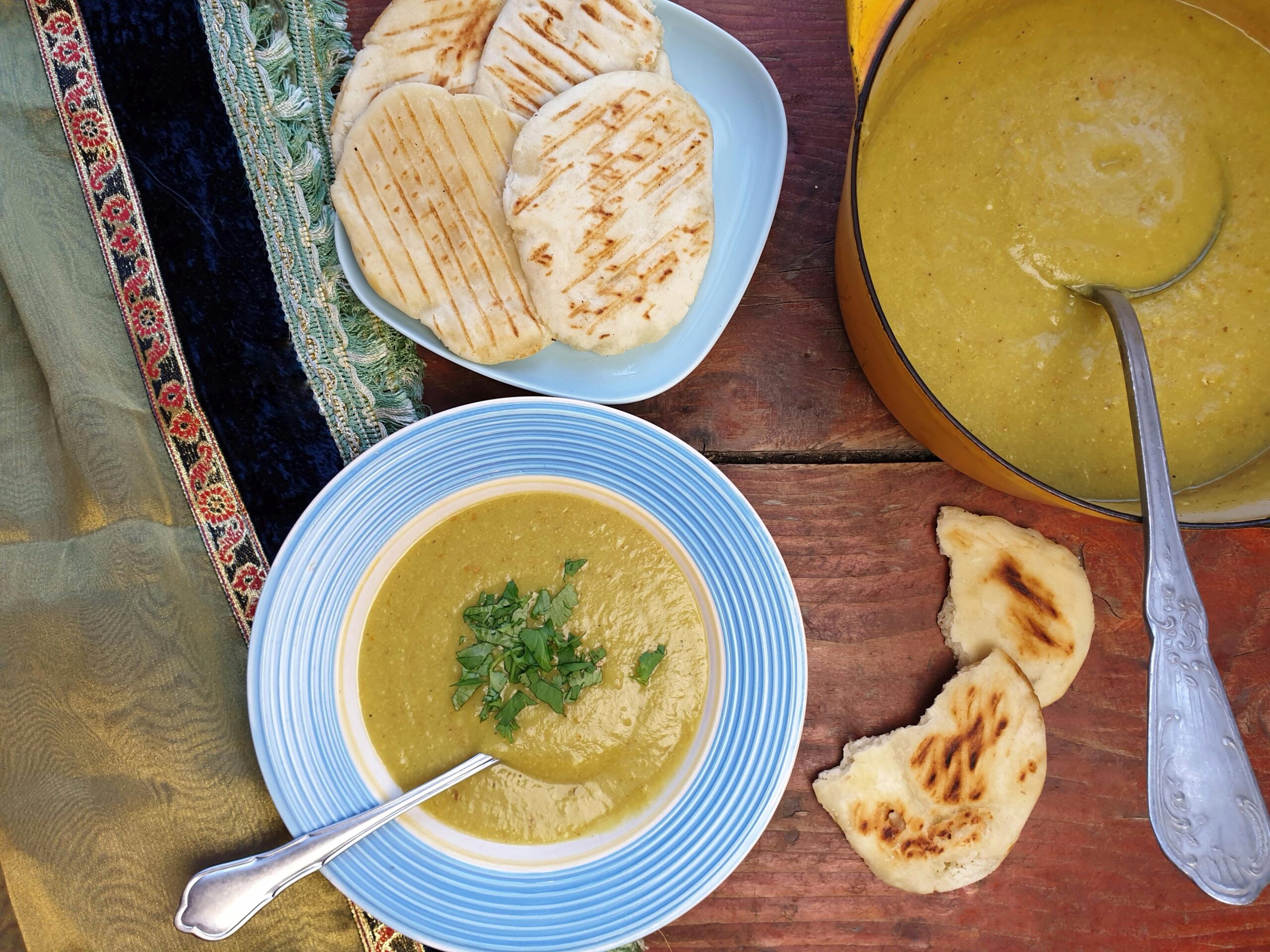 O, ja, bloemkool is zo veelzijdig! Deze keer belandde hij in een lekker kruidig soepje en we bakten er zelf naanbrood bij. Ik deed dat overigens met glutenvrije bloem en dat ging wonderwel ook prima! Heb je geen zin of tijd om naanbrood te maken, een wrap met kaas of een kaastosti smaken er ook prima bij!