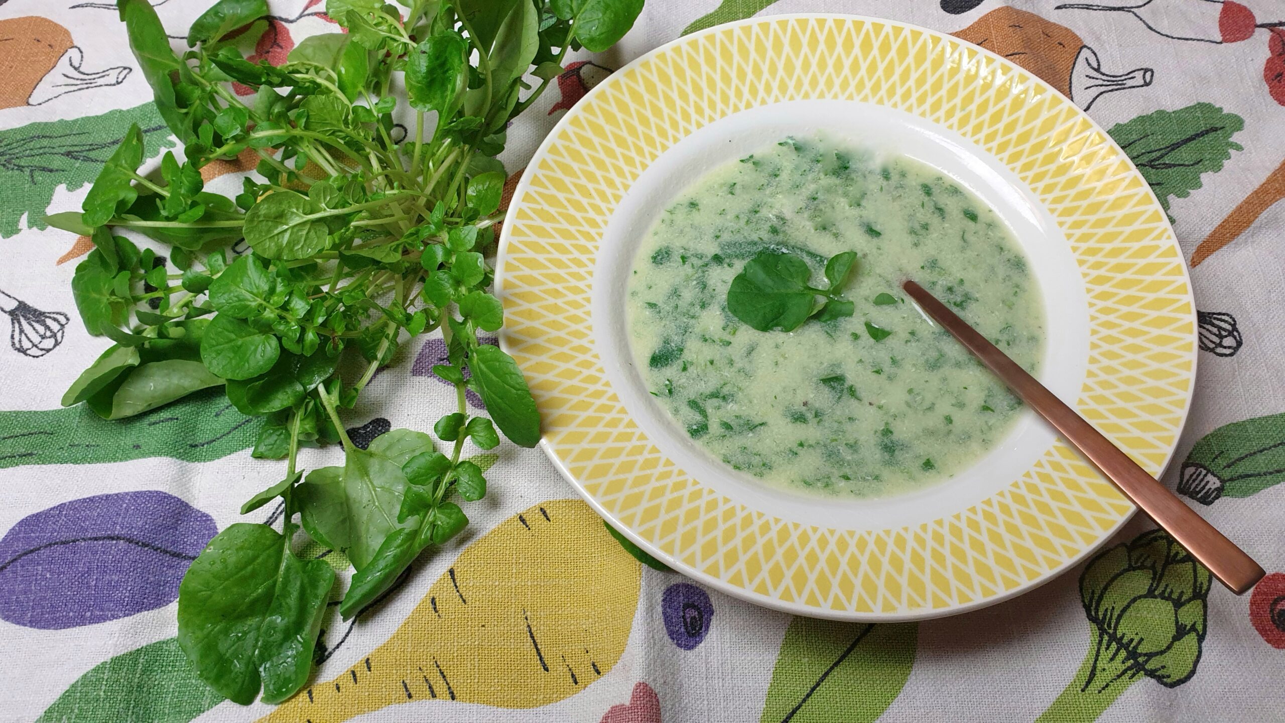 Snijd de voetjes van de toefjes landkers en was het zorgvuldig. Hak het grof, houdt eventueel een paar blaadjes achter als garnering. Schil en snijd de aardappels in kleine stukjes. Pel en snipper de ui. Verhit olie in een pan en fruit de ui glazig. Voeg de aardappels toe en bak even mee. Druk het bouillonblokje stuk op de bodem van de pan en roer er 700 ml water bij. Breng aan de kook en laat koken tot de aardappels gaar zijn. Voeg de fijngehakt landkers toe, kook 1 minuut en pureer de soep met een staafmixer. Proef voor p&z en garneer met – als je wilt – een dotje crème fraîche en een blaadje.
