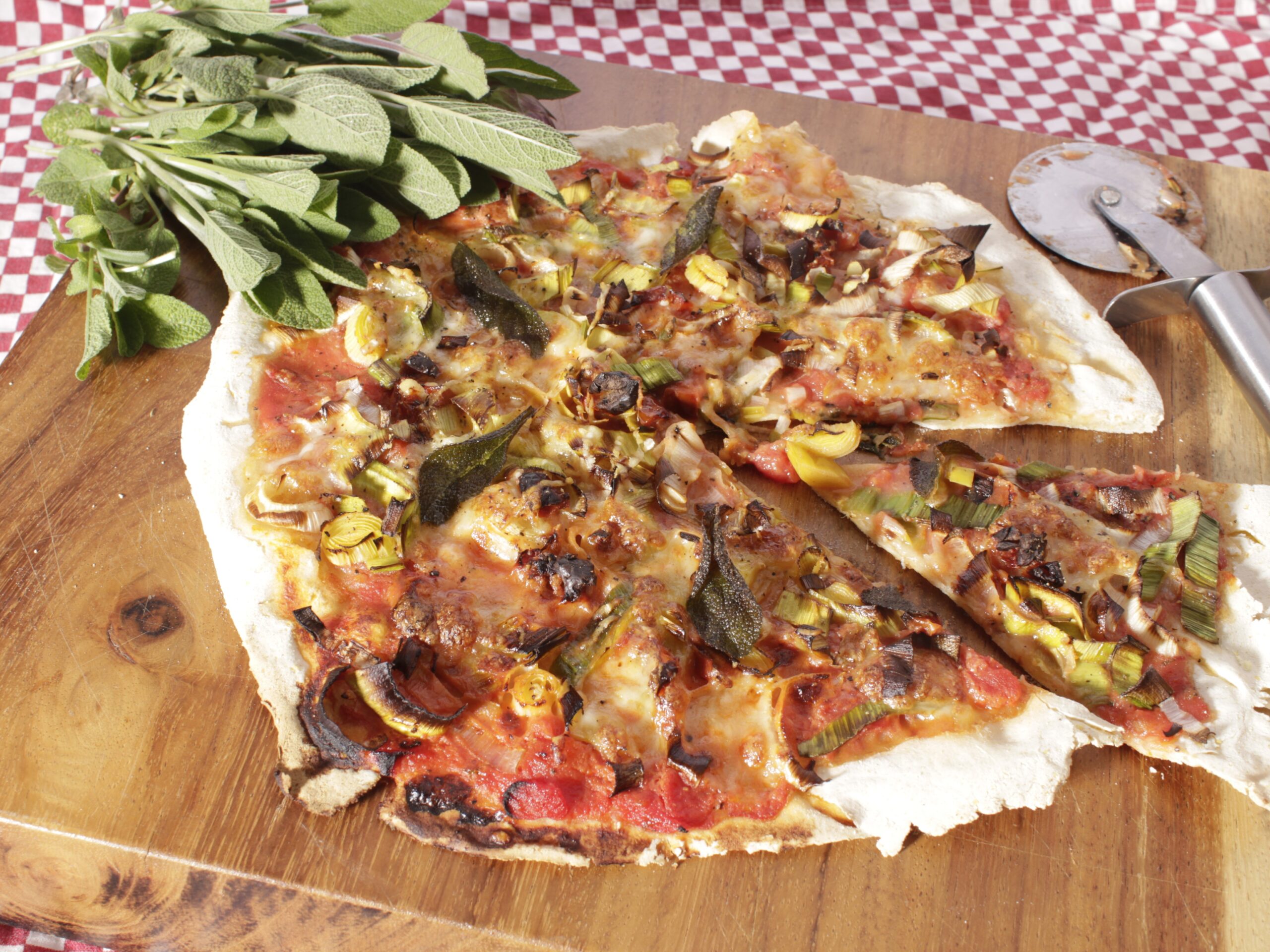 Pizza met prei en salie