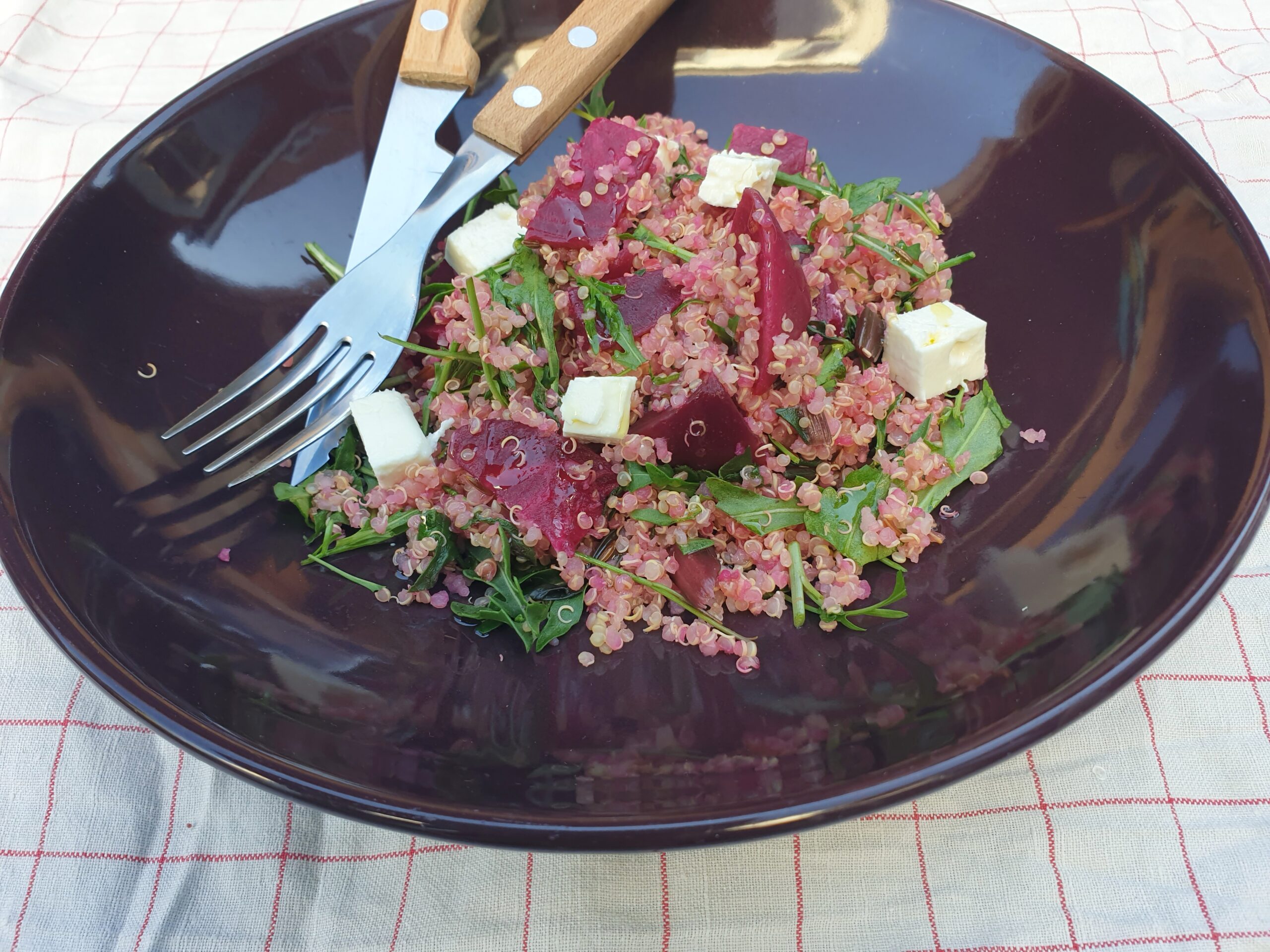 Bietjes kan je op allerlei manieren bereiden, deze keer in een combinatie met quinoa. Quinoa is heel erg lekker en ook nog eens een bijzonder voedzaam. Goed om aan je menu toe te voegen dus. Dit gerecht is zowel warm als koud lekker, dus je kunt ook prima wat meer bereiden en het de volgende dag meenemen als lunch (of thuis opeten natuurlijk). Lekker met vette vis of brokjes fetakaas, kikkererwten of andere peulvruchten zijn er ook lekker door.