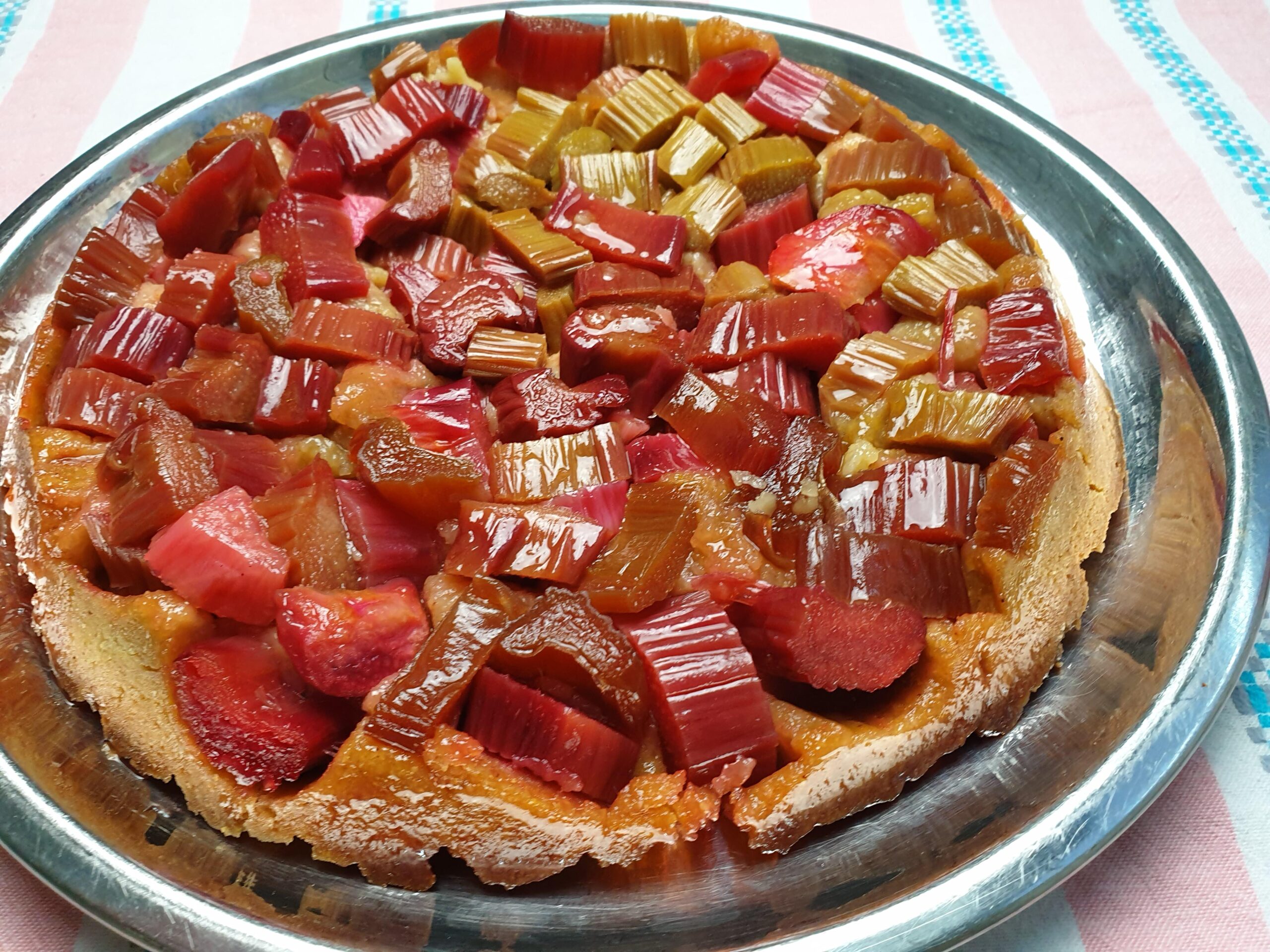 Klop 100 g boter met 50 g suiker en een snuf zout zacht in een kom of keukenmachine. Breek het ei erboven en meng erdoor. Voeg de bloem er beetje bij beetje toe. Kneed tot een mooie deegbal en leg die afgedekt minimaal 30 min. in de koelkast. Vet de taartvorm in en verwarm de oven voor op 180°C. Was de rabarberstelen en snijd in gelijke stukjes, ongeveer 1 cm dik. Maak nu de karamel – niet moeilijk, maar hou je aandacht erbij! Doe 150 g suiker en 40 ml water in een steelpan. Roer even door en leg de 50 g boter vast klaar. Zet de steelpan met suiker op een laag vuurtje. Blijf roeren, zodat de suiker oplost tot het geheel gaat koken. Zodra het mengsel kookt, roer je niet meer, ook al denk je dat het niet goed gaat. Het suikerwater gaat lekker borrelen en na een paar minuten (ik vond dat best lang duren) gaat het licht kleuren. Als het aan de ene kant van de pan wat sneller bruin kleurt dan aan de andere kant, rol je de pan zachtjes rond aan de steel, zodat alles zich mooi vermengt. De truc van karamel is de juiste kleur: te lichtbruin = nog geen smaak, te donkerbruin = bitter en niet lekker. Dat is oefenen en op je gevoel afgaan. Als jij denkt dat de karamel de juiste kleur heeft, haal je de pan van het vuur. Wacht een paar seconden en voeg dan de klont boter toe. Die wordt snel opgenomen en dat pruttelt flink. Nu is je karamel klaar. Giet ‘m meteen in de ingevette taartvorm en leg ook meteen de rabarber stukjes erop. Haal het deeg uit de koelkast en rol het uit tot een plak die past over de taartvorm. Bekleed de vorm op het deeg, stop de randjes lekker in. Bak in ongeveer 25 min. goudbruin en laat ‘m in de vorm afkoelen. Neem een bord, leg dat op de vorm en keer ze samen om.
