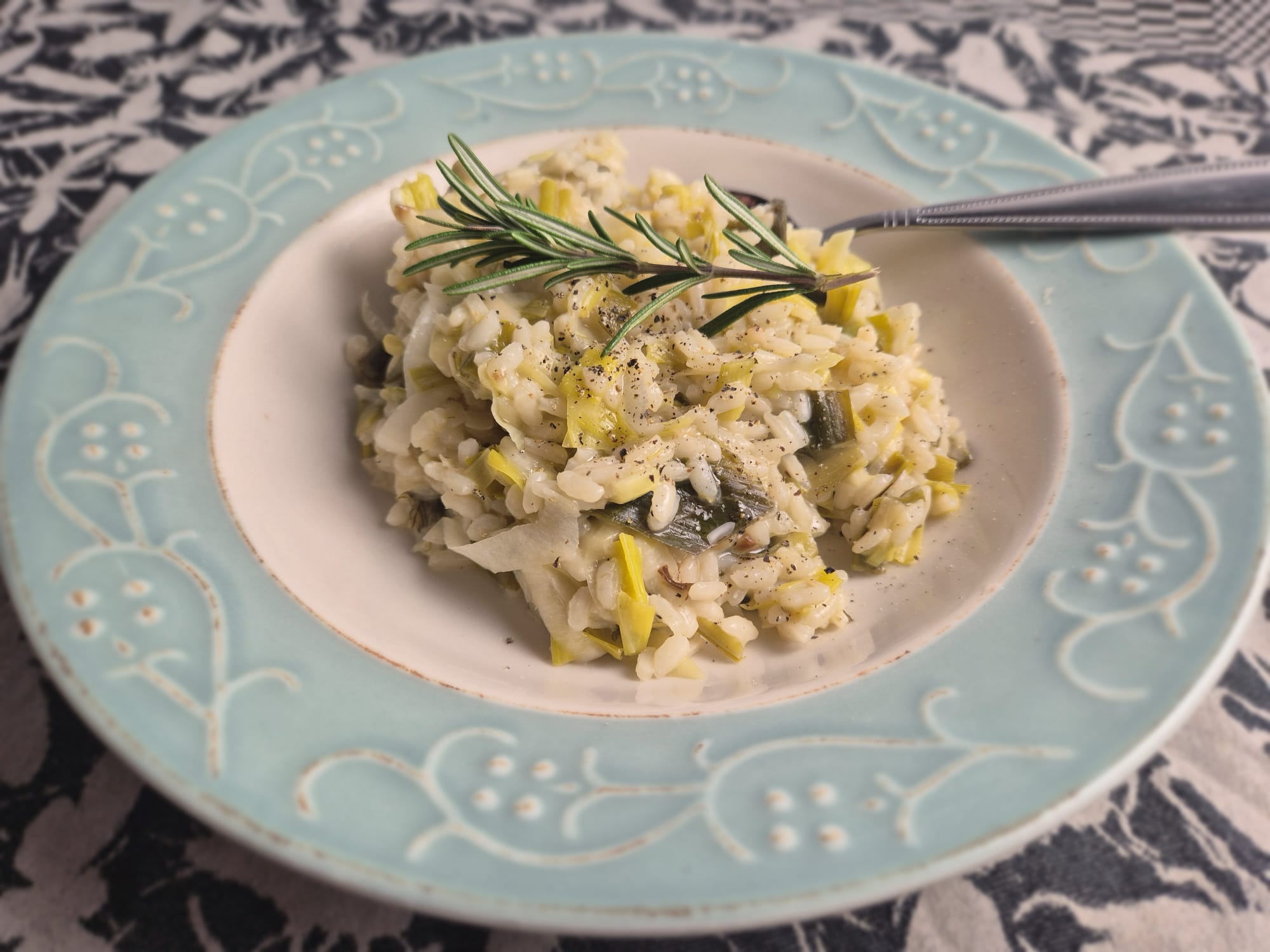 Een lekkere simpel gerecht, deze prei risotto! Risotto kook ik graag, omdat het eigenlijk heel simpel koken is, een beetje roeren in de pan gewoon. Al eerder gaf ik hier een recept voor prei-risotto, maar deze is nét weer even anders, door het zuurtje van de citroen en de toevoeging van rozemarijn. Lekker met een stukje gebakken witvis of gebakken tofu blokjes!
