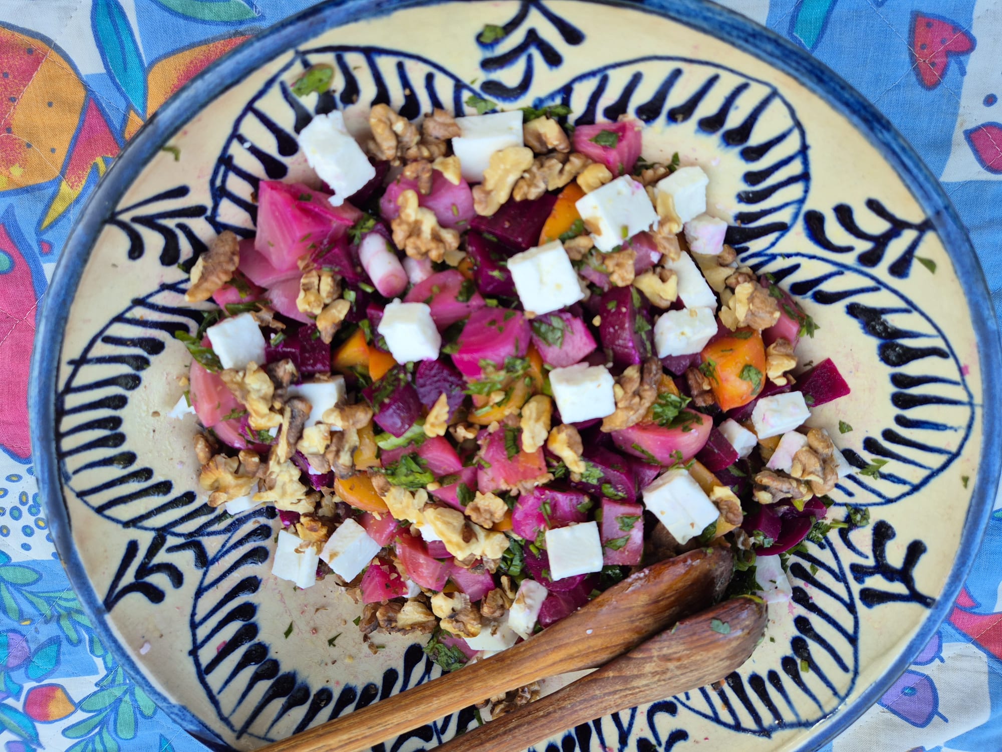 Salade van bietjes, feta, kruiden en walnoot