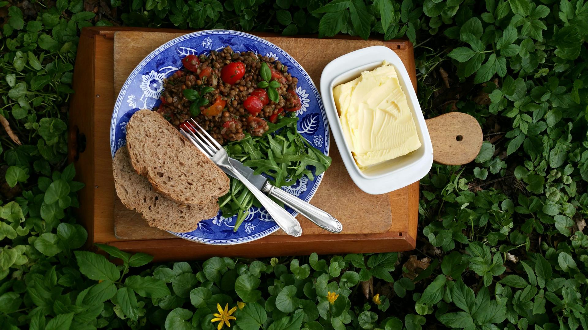 Serveer de linzensalade met geroosterd brood of gierst.